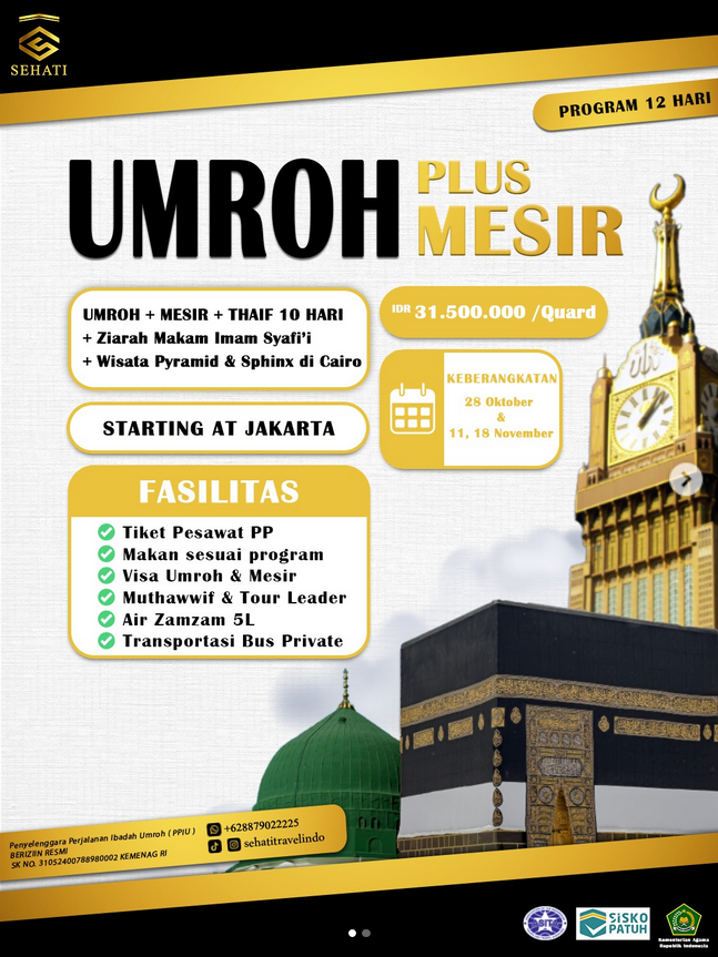 PT. Sehati Travelindo merupakan perusahaan jasa yang bergerak di bidang pariwisata, yang melayani paket wisata domestik maupun internasional, ticketing, dokumen seperti paspor dan visa, outbound, family gathering, menyediakan transportasi dan akomodasi juga semua yang berkaitan dengan tour dan travel.